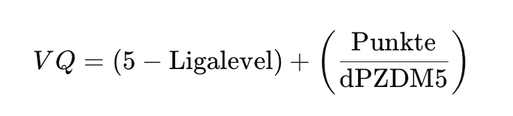 Für die Berechnung der Vereinsqualität (VQ) wurde folgende Formel verwendet: